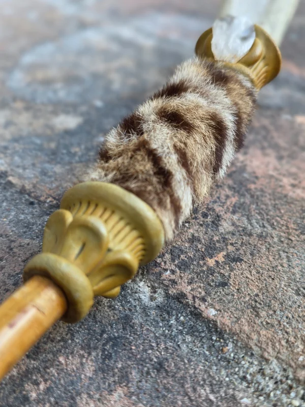 Il giaguaro è una figura centrale nelle culture della selva, simbolo di forza, coraggio e presenza. La pelle utilizzata per adornare questo Tepi richiama queste qualità, conferendo allo strumento una forte identità simbolica e un legame profondo con l’immaginario amazzonico.