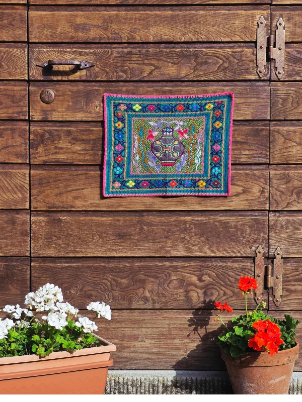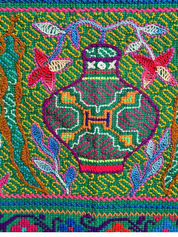 Il Centro Decorativo Shipibo “La Fortuna” è un’opera di artigianato Shipibo interamente cucita e colorata a mano. Le sue geometrie sacre raccontano storie millenarie e portano con sé un’energia simbolica profonda, legata alla tradizione amazzonica.